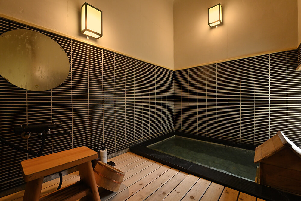 二つの和室と、温泉内風呂付の眺めの良いお部屋です 主室と次の間の二つの和室は、障子を開け放てば16~18畳の広々とした空間としてお使いいただけます。室内に備えた内風呂では「十和田石」の湯船の風情と「桧壁」の香りと共に、湯野上温泉の湯を源泉掛け流しでお楽しみください。窓からは季節で表情を変える大川渓谷を望む、会津建築による離れに近い造りです。 同タイプとして【河風・岩風・松風・佳風・初風】の五室がございますが、お部屋の指定は当館にお任せいただきます。